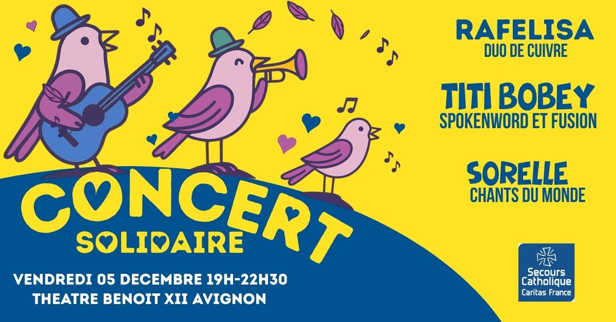 Le vendredi 5 décembre 2025, l’accueil de jour du Secours Catholique d’Avignon a organisé son premier concert solidaire au Théâtre Benoît XII, au cœur de la rue des Teinturiers. Une grande première pour l’équipe, qui a relevé avec succès le défi de l’évènementiel pour renforcer la visibilité de l’association… et soutenir ses actions de solidarité.